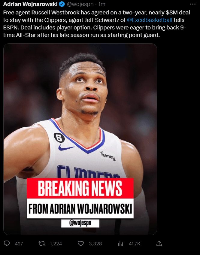 Clippers give Russ minutes on a contending team. He’s also apparently good friends with Paul George. It makes sense for both the Clips and Russ.