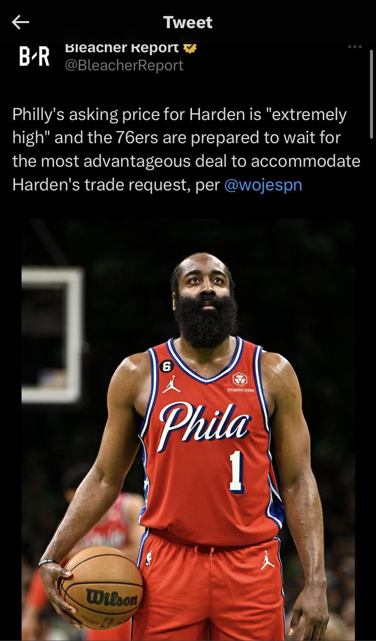 let the asking price for harden be high, it’s the only way we either stock up assets for the future OR actually get pieces which can help us now.