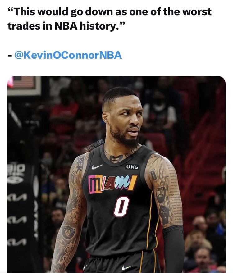 Look, the Heat very much might give the Blazers the 1st and 3rd picks in the draft in 2028 and 2030, but that’s the price of doing business. Dame/Butler/Bam surrounded by a competent supporting cast is easily the championship favorites.