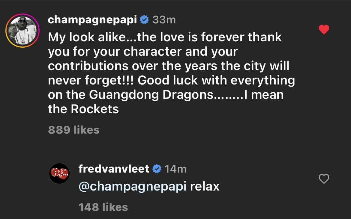 Meanwhile, Drake spends a lot of time in Houston. Think his dad lives there now. He will be floor seats at Rockets games haha