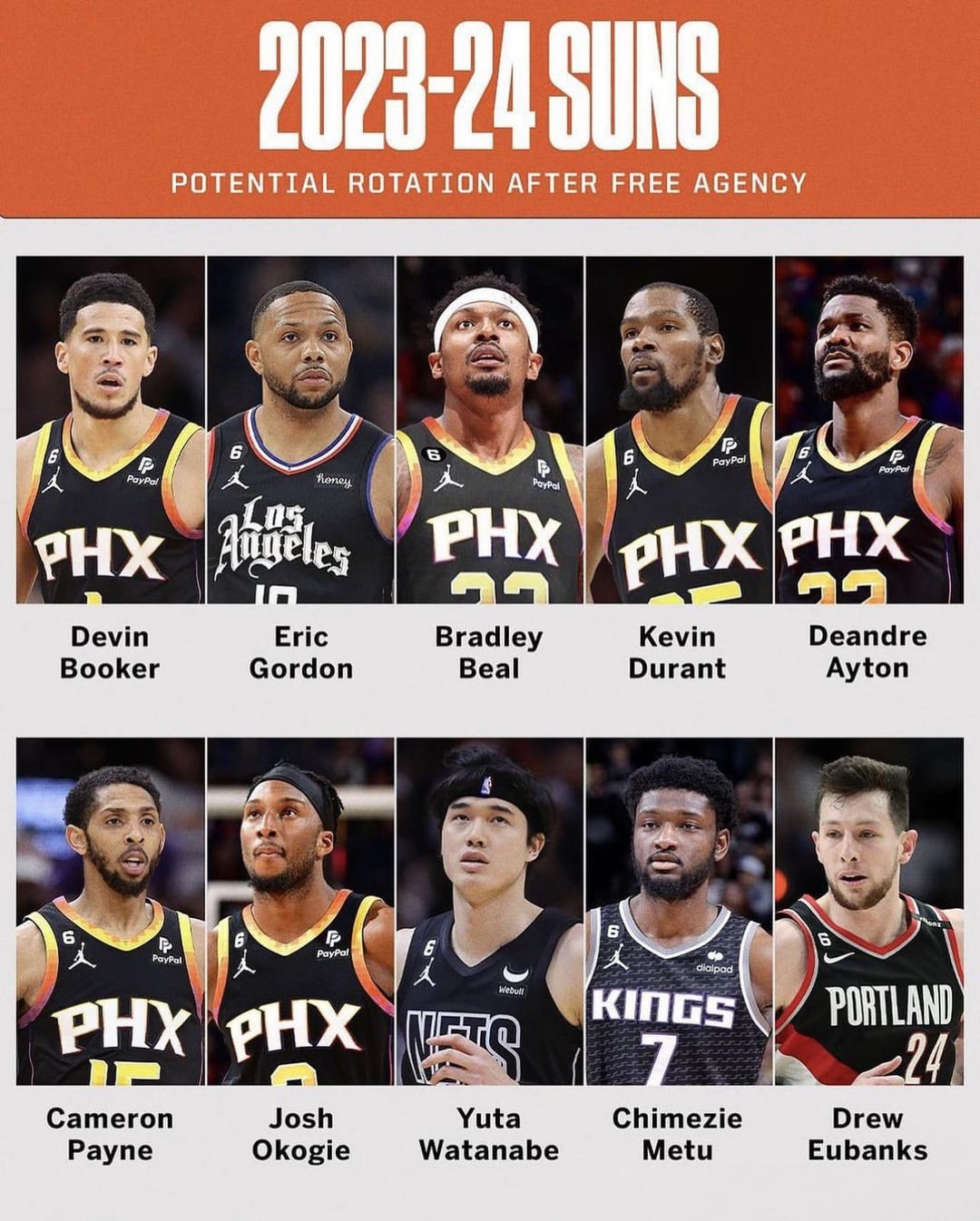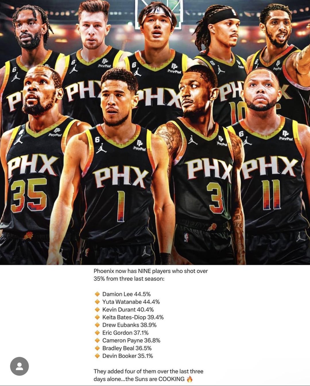 This team has tremendous flexibility and can play any style of ball essentially. Even a small ball lineup of EG, Book, Beal, Yuta & KD will be lethal.