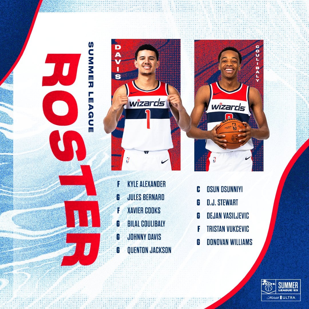 [Source](https://www.nba.com/wizards/news/wizards-announce-2023-summer-league-roster) by AsYouWishon Eastern ConferenceSoutheast DivisionWashington Wizards Prev Post Charlotte Hornets Brandon Miller NBA Summer League debut July 4, 2023 Next Post Got a chance to shoot on the court at game 3 this past playoffs July 4, 2023 5 Comments Turbo2x 3 years ago Shortest player on the team is 6’3 and Bilal is listed as a 6’6 guard. TALL BALL ALERT. The Wizards are going tall. TheHeftymanzell 3 years ago So can Baldwin and Rollins join after the trade is finalized Xanzibarisland 3 years ago Letโs go Bilal!!! PickledEggs420 3 years ago Serious question. Is it bad that last yearโs first rounder is playing Summer League? I honestly just donโt know whatโs standard. scrawlx101 3 years ago Thoughts on quenton jackson playing the g league? Do we think Vukcevic spends some time at C? Thoughts on Cooks? Write A CommentYou must be logged in to post a comment.