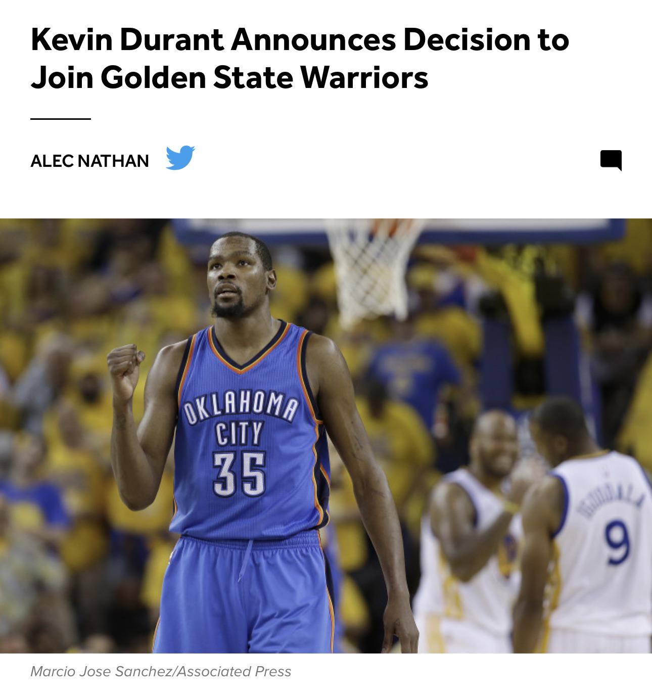 Was dead asleep and my wife very softly said. What does KD signing with the Warriors mean? My eyes popped open and immediately ran to my computer to read the news. What a glorious day that was.