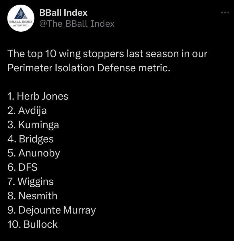 I’m guessing the sample size of Kuminga defending guys in an iso is wildly small, though probably bigger than Avdija’s.