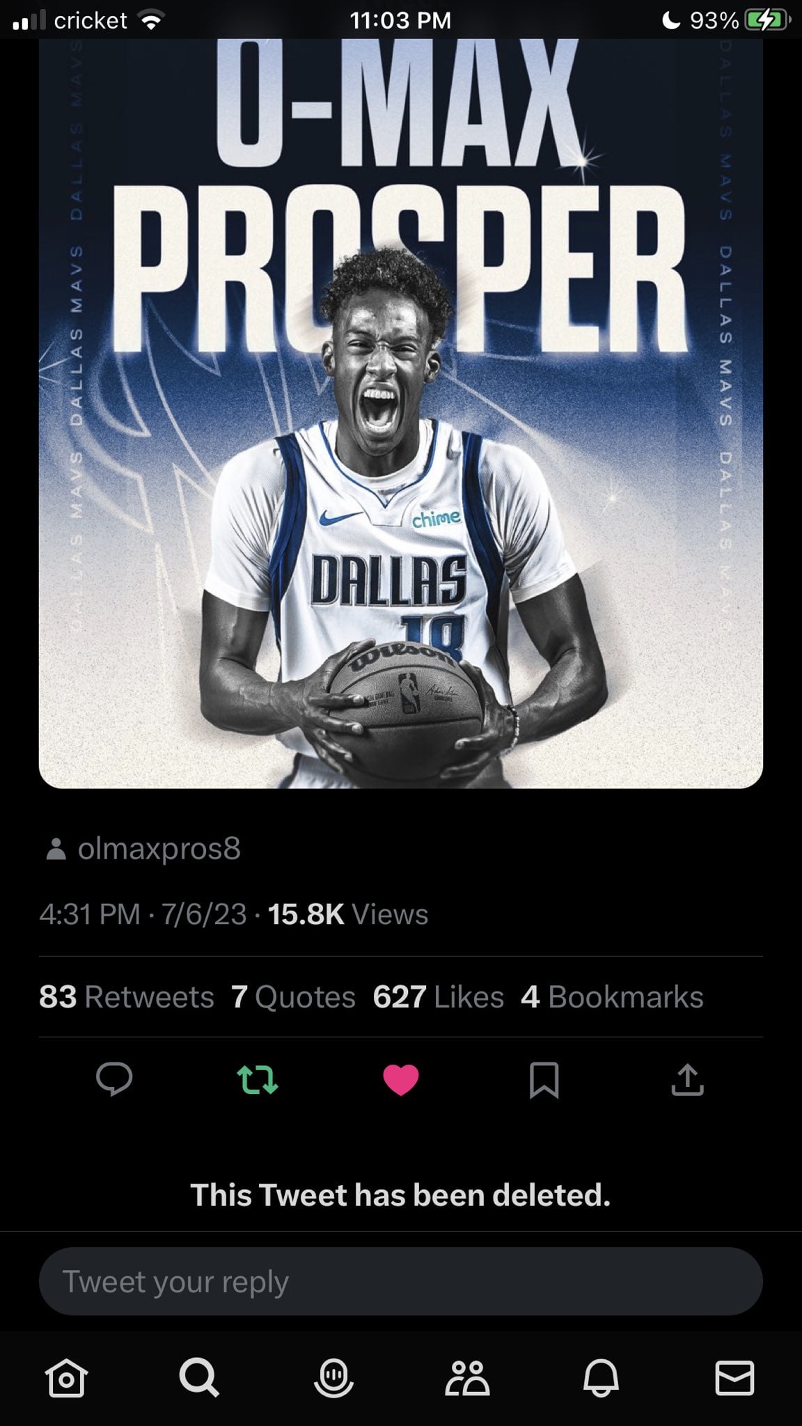 People on twitter are freaking out because the Mavs deleted their “Welcome OMax” tweet… I hope he isn’t being traded this soon…