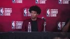 Indiana Pacers guard Andrew Nembhard speaks with the media following the Indiana Pacers 108-85 win over the Orlando Magic in NBA Summer League.