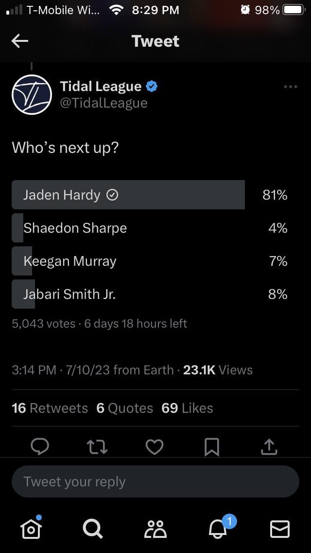 Mavs Twitter can help elect a Presidentby maverickhistorian Dallas MavericksSouthwest DivisionWestern Conference Prev Post Brooklyn Nets Resign Royce O’Neale July 11, 2023 Next Post God, it must suck to be a sportswriter… July 11, 2023 1 Comment maverickhistorian 3 years ago I see polls like this all the time, we crush any and all opposition. That got me wondering, why dont politicians campaign to us? They have The LGBTQ, Hispanic, Black, ect. and now MFFL vote to get.Write A CommentYou must be logged in to post a comment.