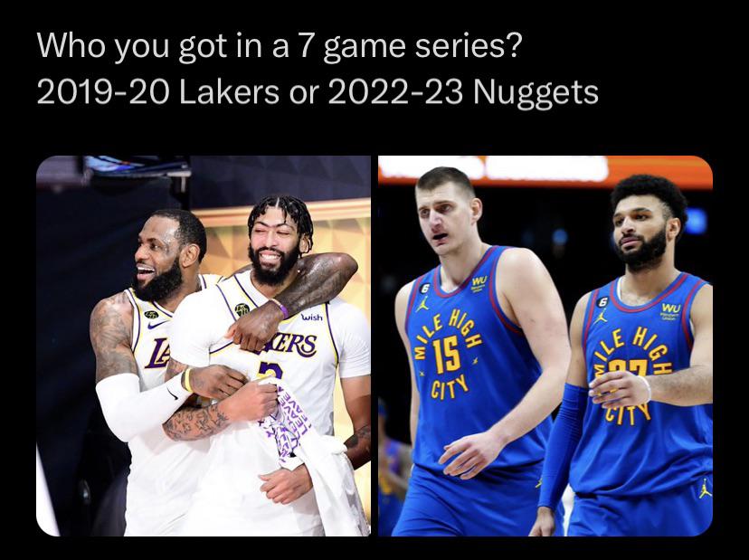 A matchup between 2020 AD and 2023 Jokic would be amazing. Lakers in 7!