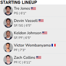 I know they have said Collins is going to start, but I just don’t see it. Tre Jones, Devin Vassell, Keldon Johnson, Jeremy Sochan, and Victor Wembanyama is who I expect to start. They could experiment with Sochan at point and start Collins over Jones, but I just don’t see that as being as effective long term.