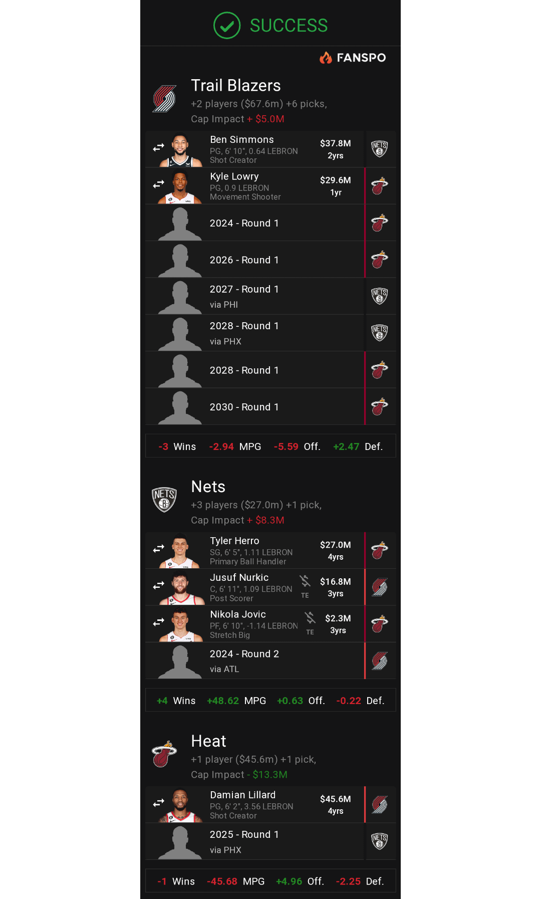 I’d say either Nurkic or Dinwiddie end up in Miami along with Dame, all picks go to Portland and Herro and maybe Jovic to Brooklyn.
