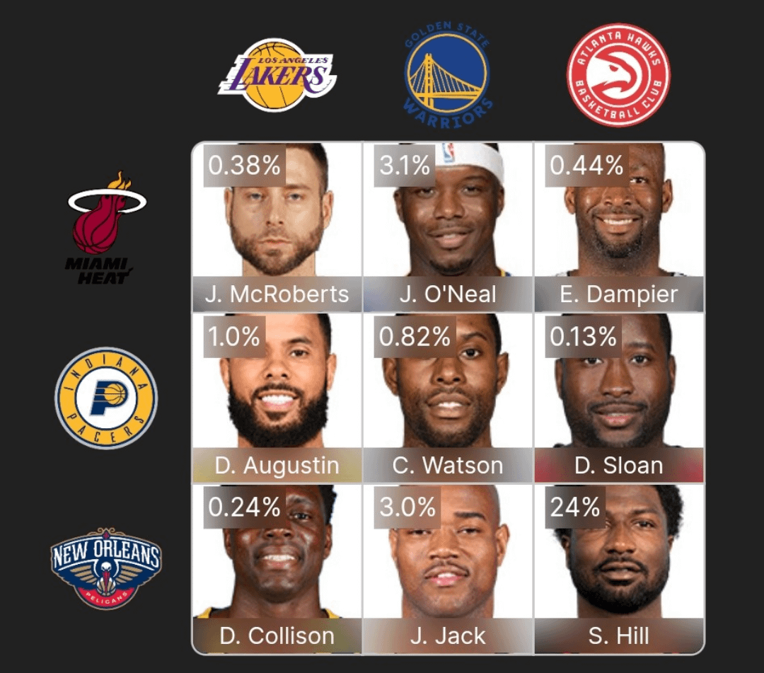 If you can think of a better percentage fit than Solomon Hill let me know in the comments. This took over an hour and a half with the added difficulty of they all had to play for the Pacers.