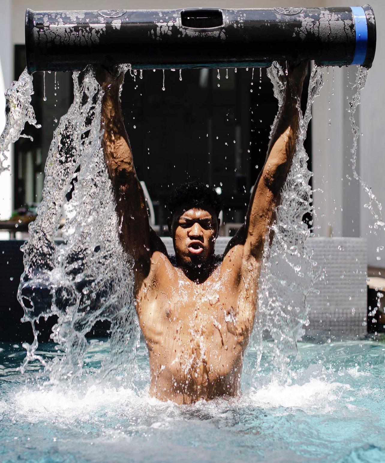 Dayum! His intense samurai training got him water boarding himself.