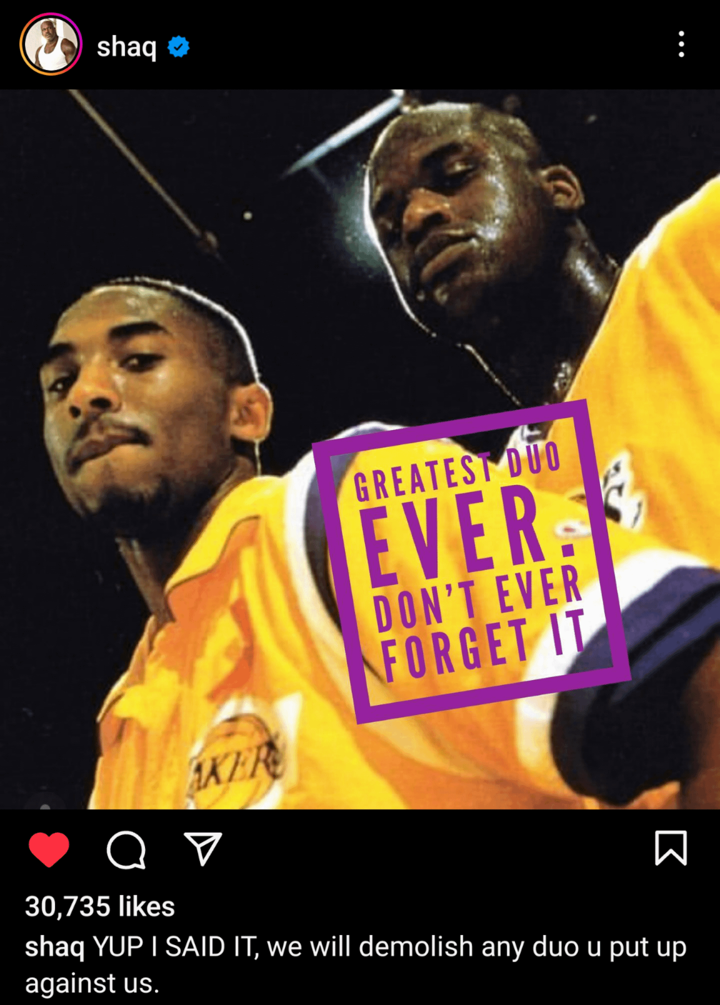 Love Shaq but it seems like he switches up every damn day. One minute he’s gloating about being the best ever, then goes on tangents how none of his teams would have been in the finals if it wasn’t for him then he calms down and drops a Kobe’s my brother post. Starting to get pretty cringe . It’s legit all the time . I’m pretty sure he’s called himself and Dwade the best duo ever before also