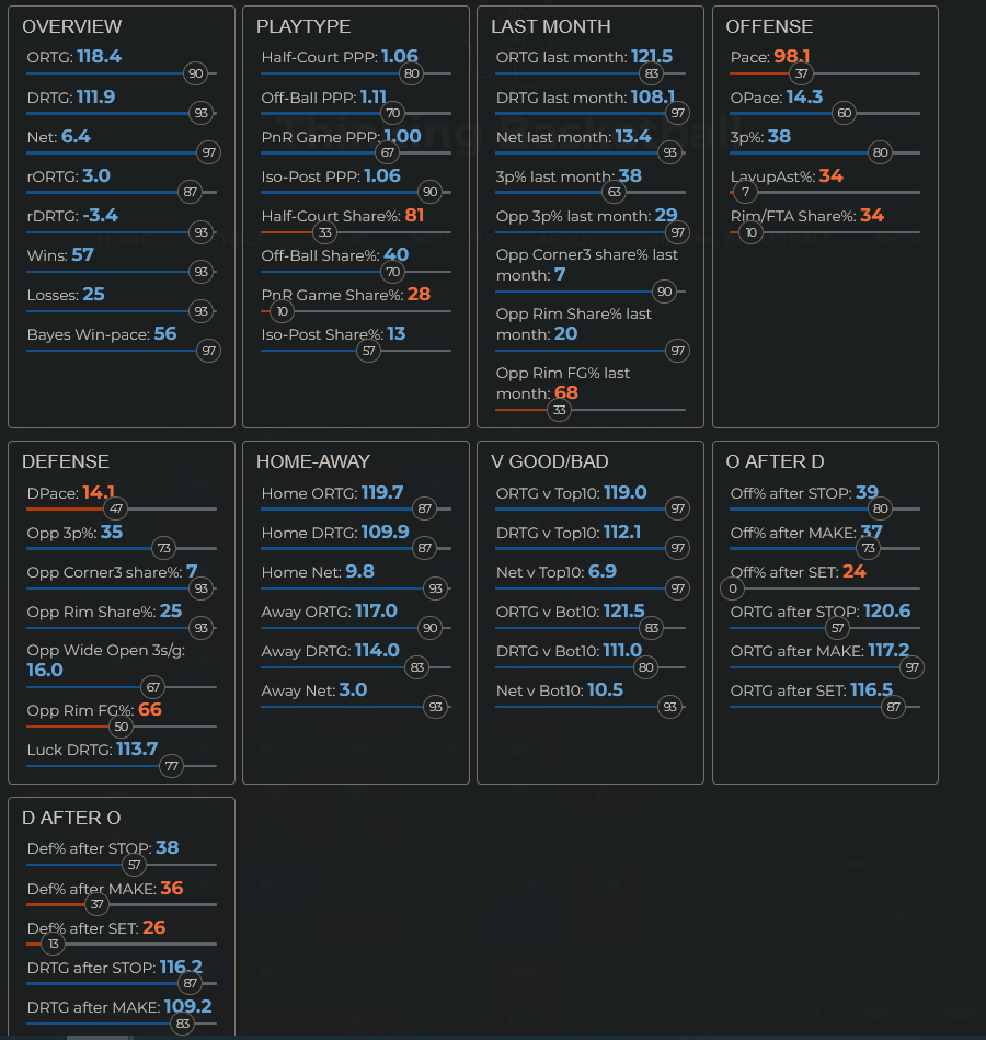 * The total lack of assisted layups and the very low RIM/FT attempt shares is pretty frustrating to see. The variance of 3 point shooting, no matter how good the team is with them, can be much harder to overcome in comparison to the far more efficient and reliable layups and free throws that come from a lot of drives.