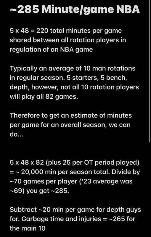Here’s my best guess at rotation minutes. I listed TJ at depth instead of the primary 10 rotation guys as he might get squeezed (could flip flop he and Nesmith if you prefer)