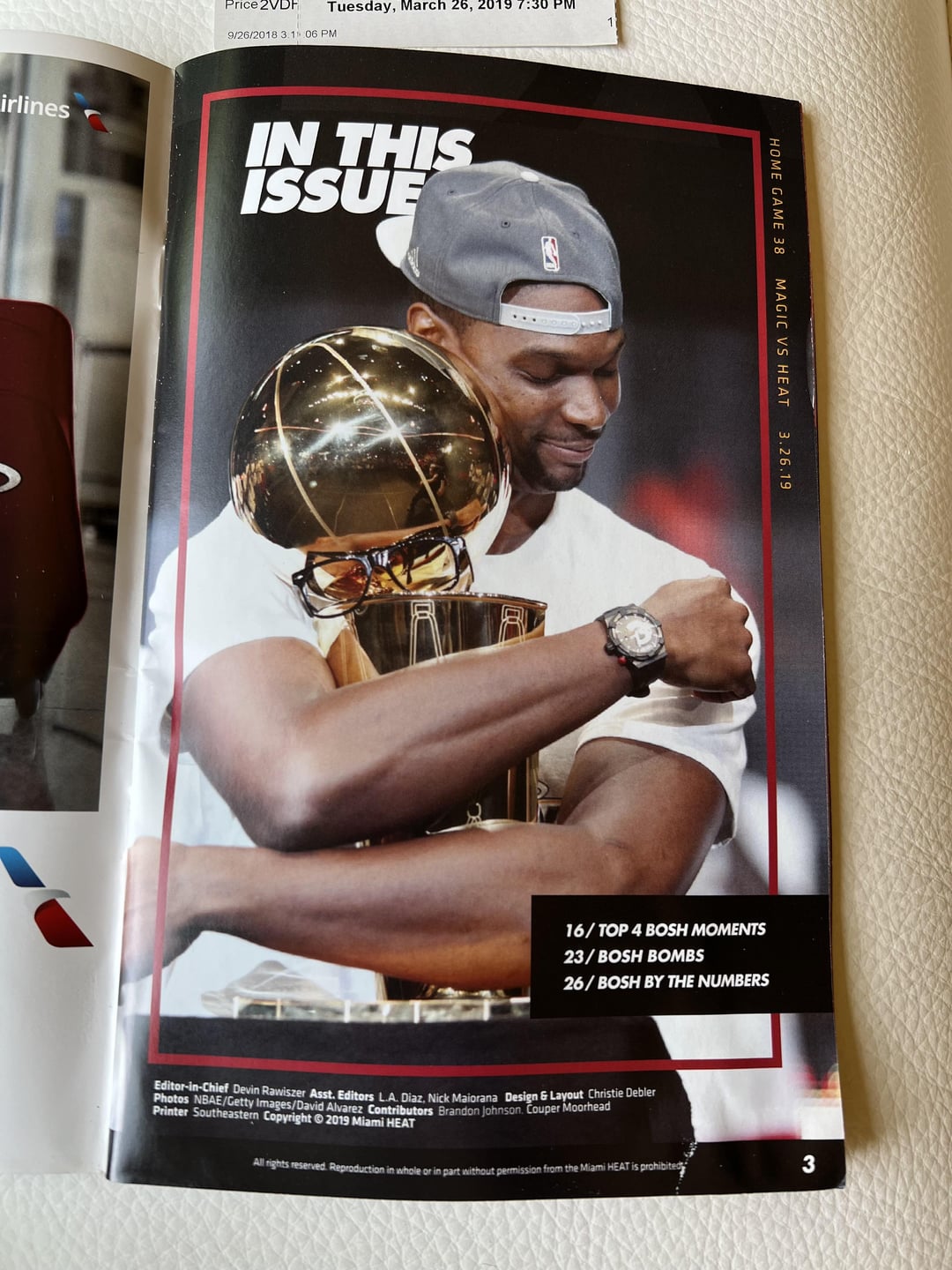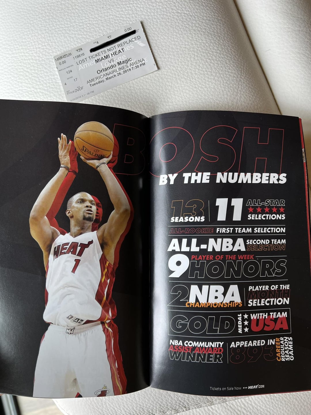 Forgot to mention. This was the ticket / program from Bosh’s jersey retirement.