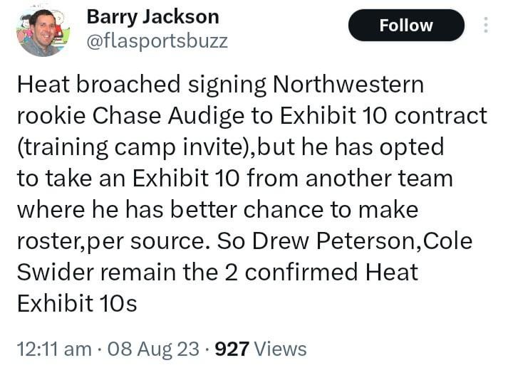 Shame. He was maybe the only UDFA not already signed from summer league that I was interested in getting into our program. But his agent probably has a better ear for where roster spots might open up so it’s understandable. These guys rarely get the chance to show out in the league that they need all the chances to get minutes that they can. Best of luck to him.
