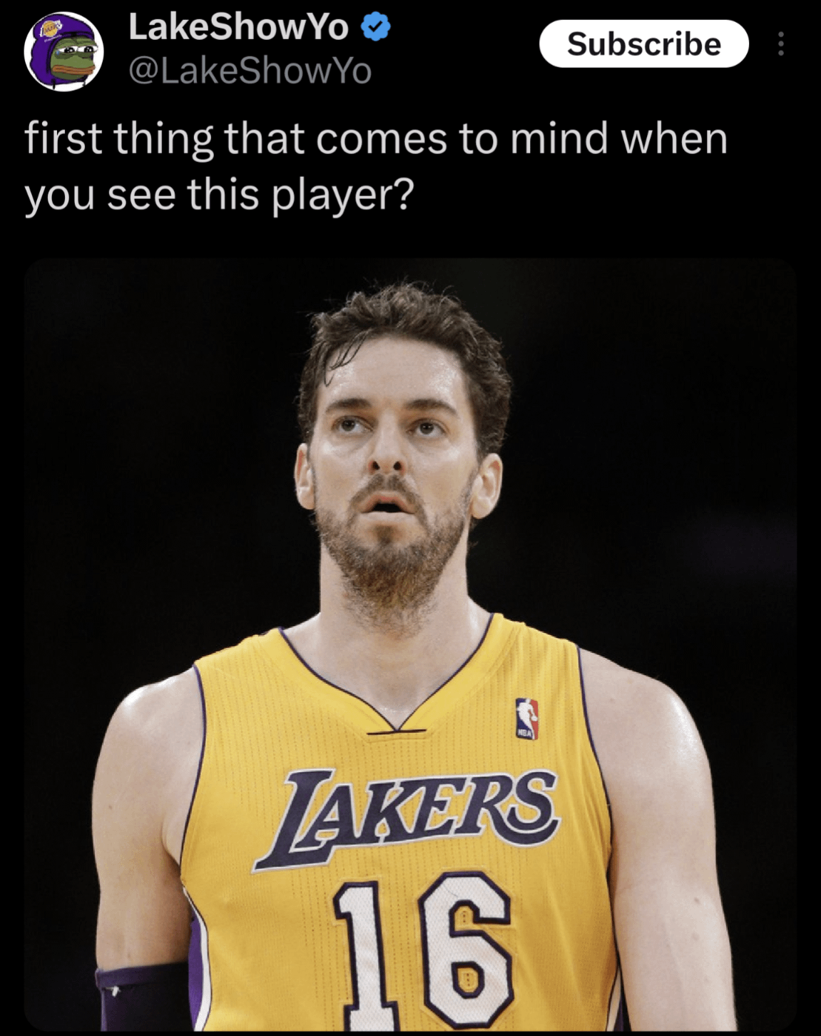 Doesn’t get mentioned enough as a Laker all time great. Dude was a stud and the perfect player to compliment Kobe on the basketball floor.