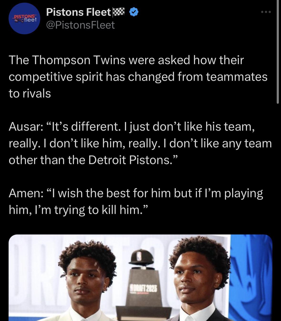 Ausar: “It’s different. I just don’t like his team, really. I don’t like him, really. I don’t like any team other than the Detroit Pistons.”