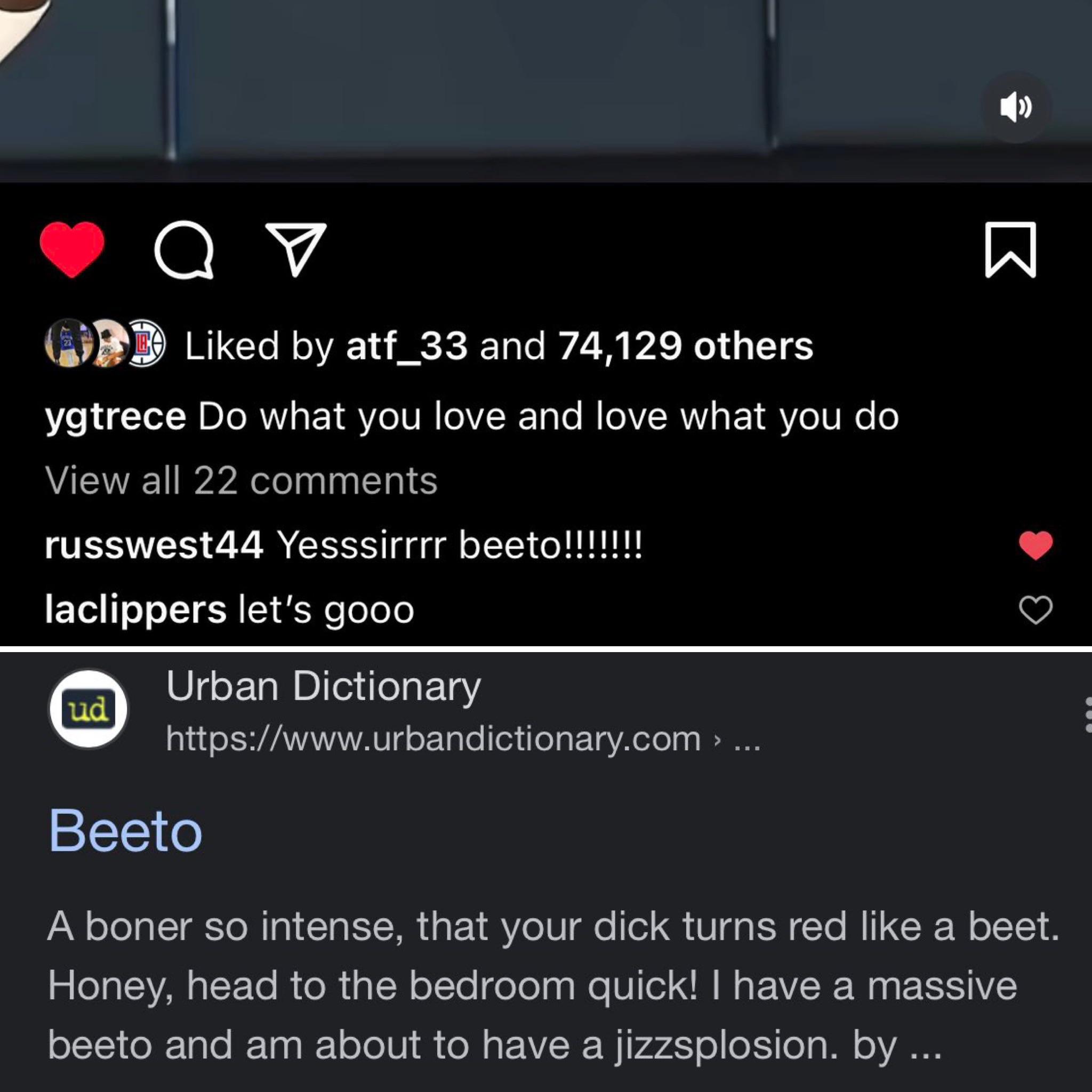Russ and PG got a strong connection 🤝 by BasedChad69420 Los Angeles ClippersPacific DivisionWestern Conference Prev Post The Sacramento Kings Bring Back Neemias Queta | Locked On Kings August 10, 2023 Next Post RJ Barrett FIBA Update | Josh Hart Talks New Deal | Trae Young Owns The Knicks?! August 10, 2023 4 Comments UrDadsFave 2 years ago This definitely must be white slang. whiskey_neat_ 2 years ago I have never heard a red rocket being referred to as a beeto. digitalme 2 years ago russ do be going hard in the paint fr buyanisland 2 years ago LmaoWrite A CommentYou must be logged in to post a comment.