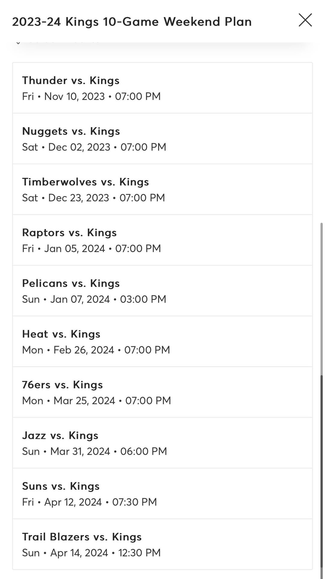 Some early schedule leaks from the Season Ticket holders website by HermesTGS Pacific DivisionSacramento KingsWestern Conference Prev Post Bryant “Big Country” Reeves in the Vancouver Grizzlies turquoise jersey. It was nice to have met him several years ago. August 17, 2023 Next Post What Will Be Spurs STARTING LINEUP? August 17, 2023 2 Comments PrimaryAccording9162 3 years ago We have the Warriors then the Lakers in October Crown92royal 3 years ago Does the full schedule drop today? Write A CommentYou must be logged in to post a comment.
