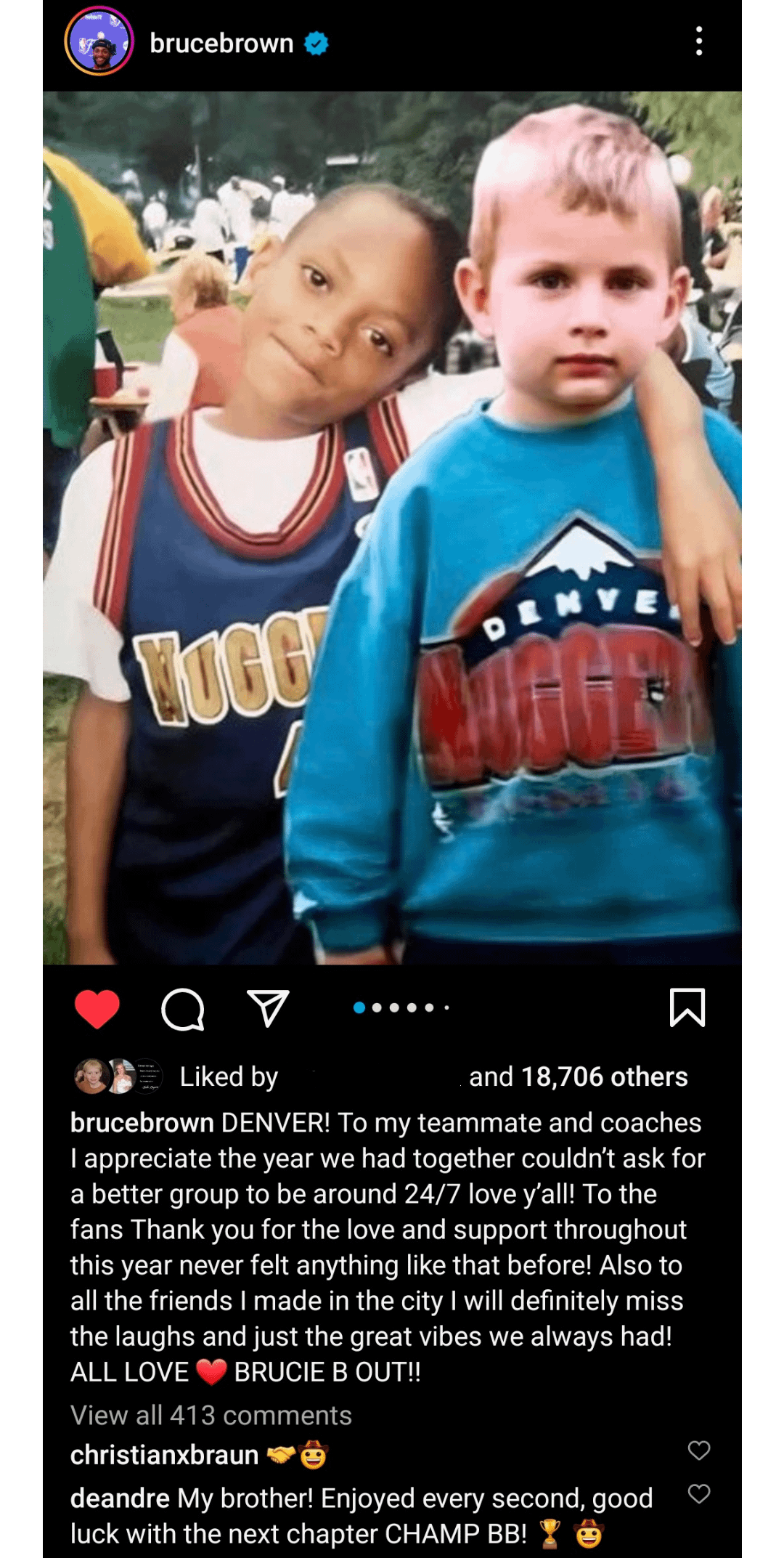 Retitle your post to properly acknowledge the title of Denver Nuggets legend Bruce Brown.