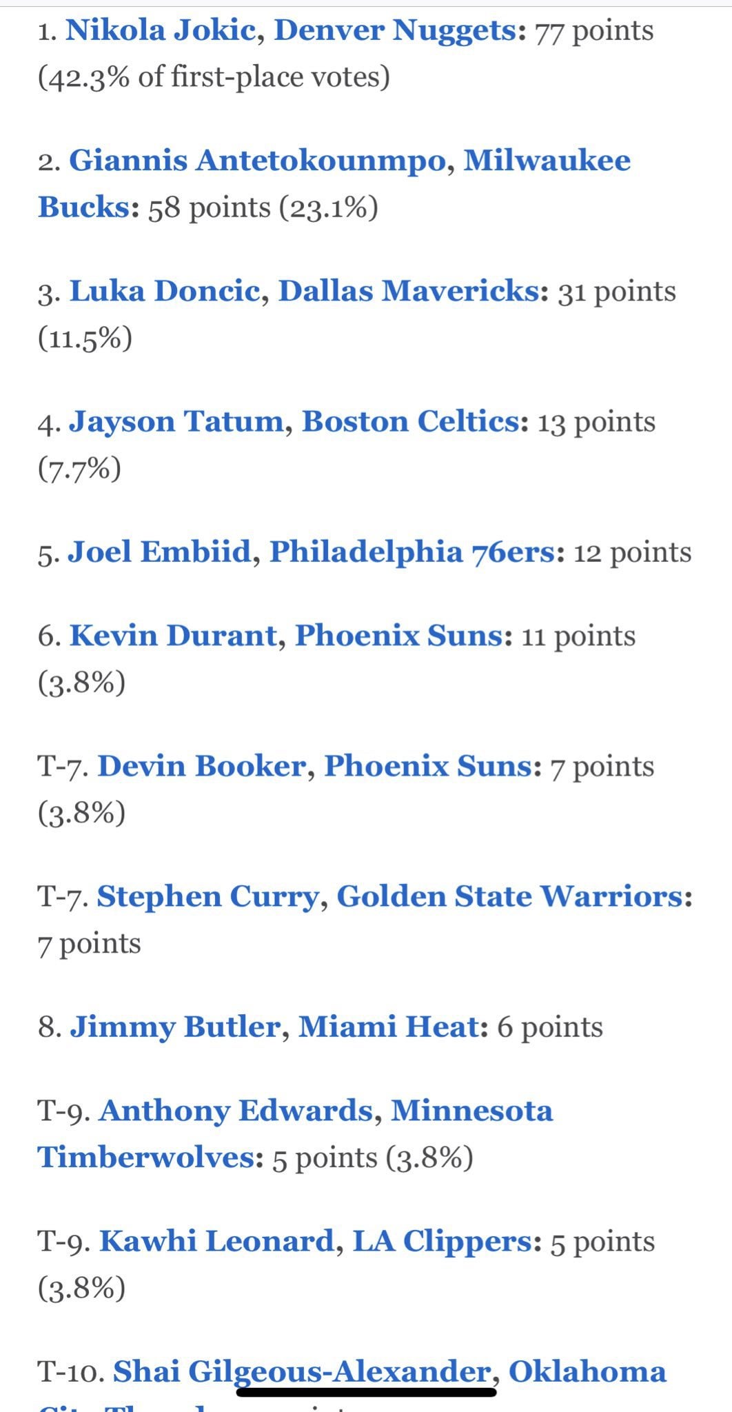 [Stiles] ESPN predicted awards for this upcoming season and Shai Gilgeous-Alexander finished top-10 in MVP, Josh Giddey and Jalen Williams are top-10 in MIP, and Chet Holmgren takes home Rookie of the Year. Mark Daigneault wins Coach of the Year according to this panel too.