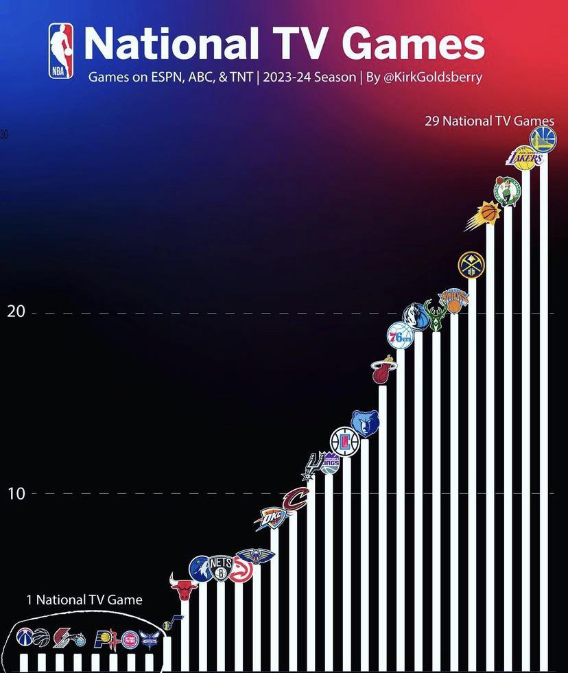 Most of our televised games are against those same top 3-4 teams. Celtics, Bucks, Lakers, Dubs.