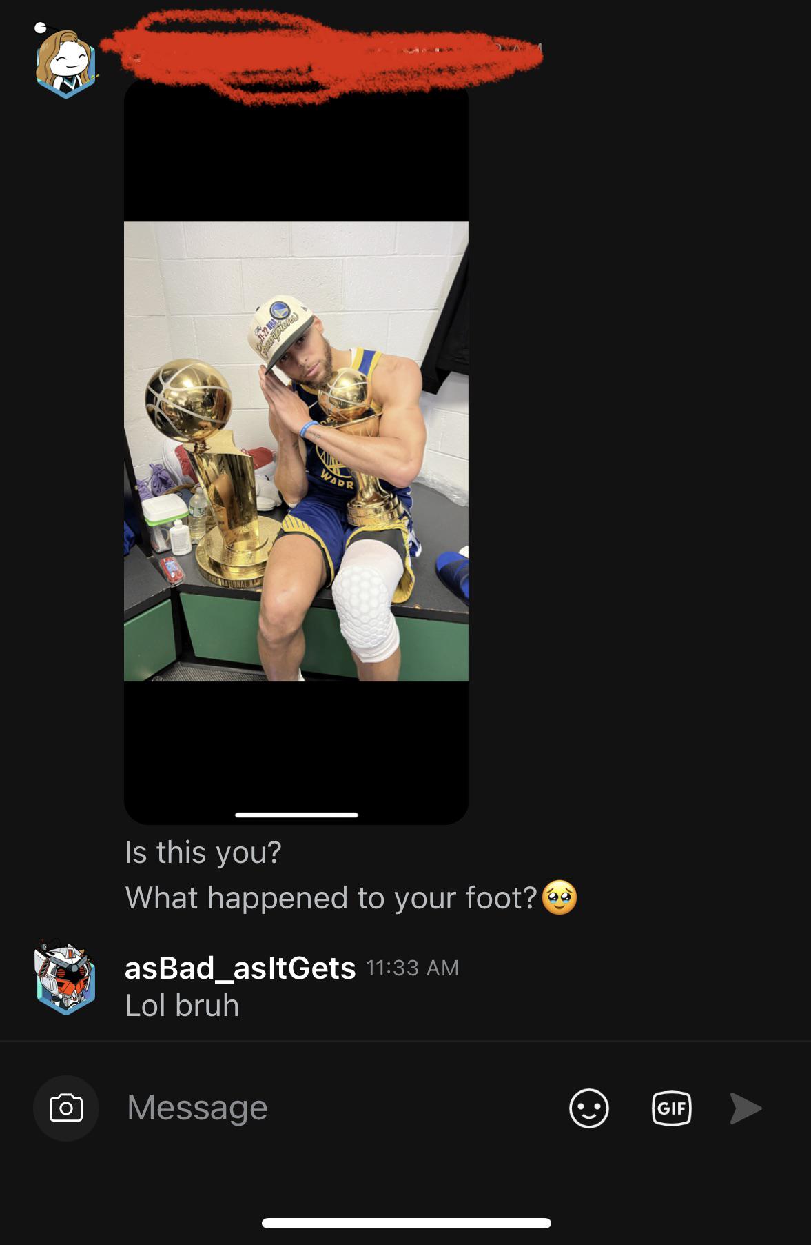 Idk if this type of post is allowed. But I just wanted to share a laugh with y’all. Some rando was DMing me and looked at one of my old posts and asked this. I think they were a bot but their responses seemed somewhat genuine. But wouldn’t be surprised if it was an AI or something.