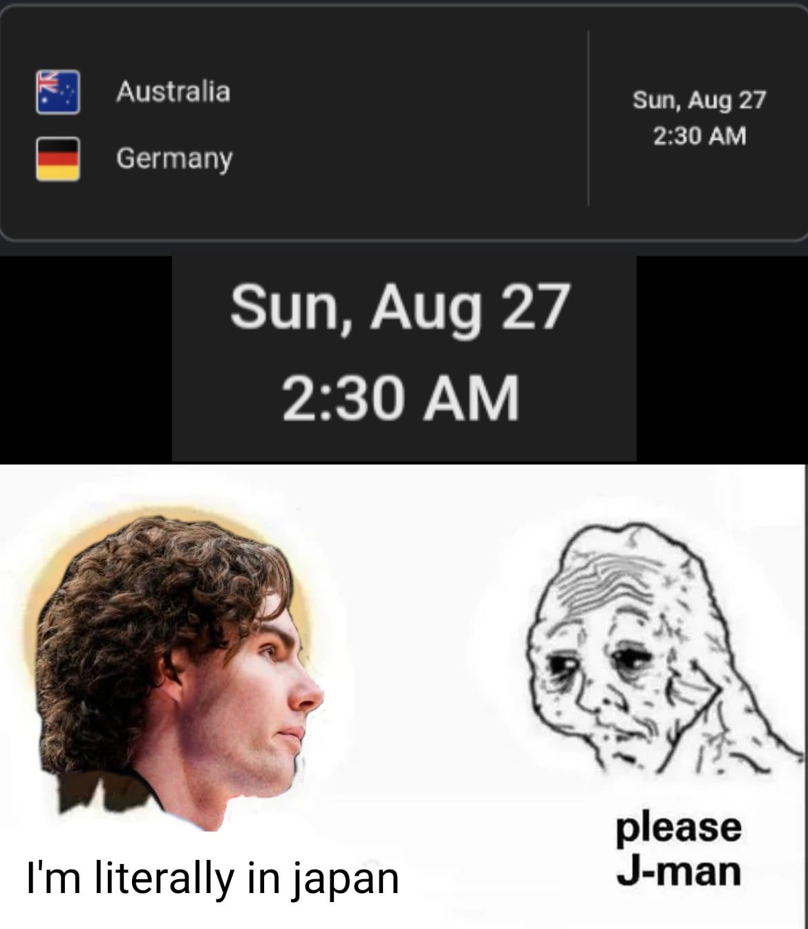 UpsetFeedback8 3 years ago That’s me the whole season. World cup feels great being able to watch our guys so early. Australia played at 11:30 AM and Canada at 4:30 PM for me.