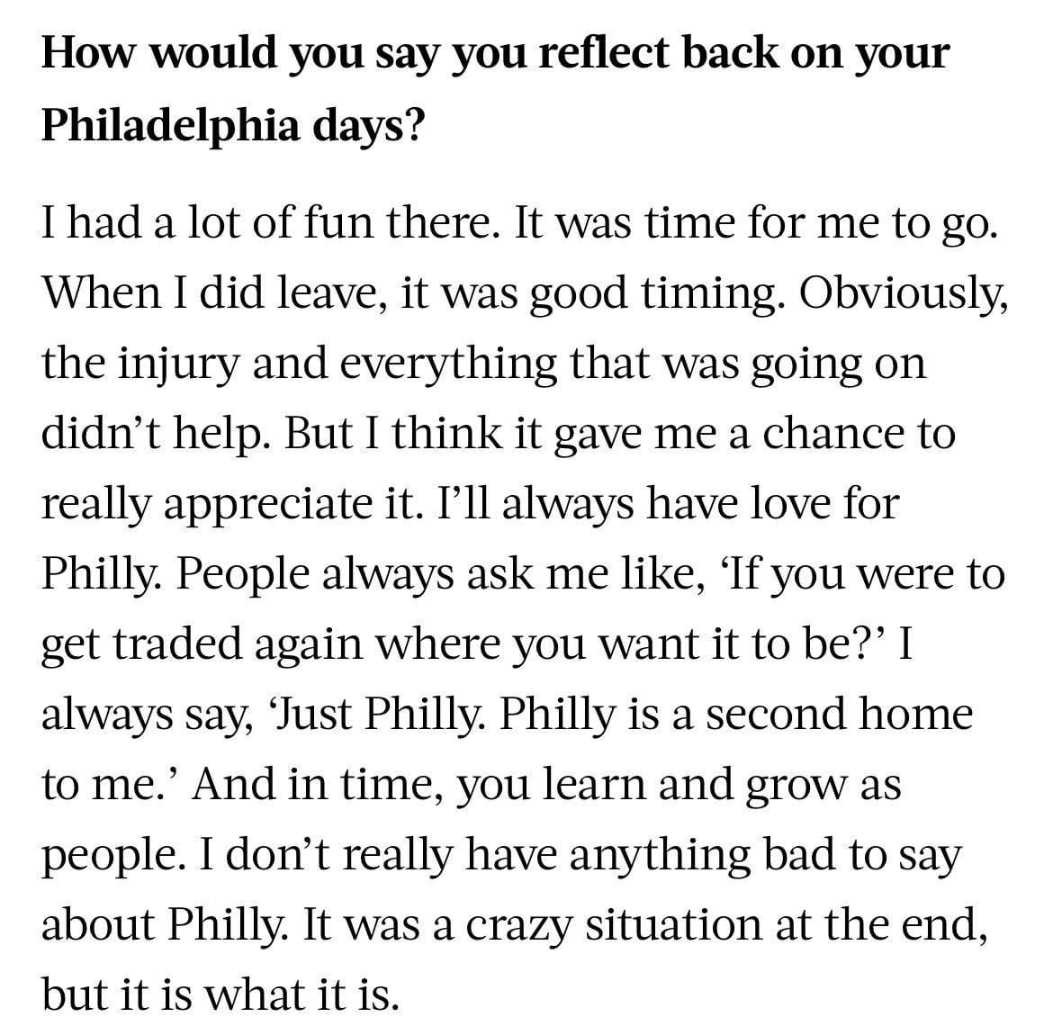 [Grugan] Former Sixer Ben Simmons (via AndScape): “I’ll always have love for Philly. People always ask ‘if you were to get traded again where would you want it to be?’ I always say ‘Just Philly’.” #Sixers