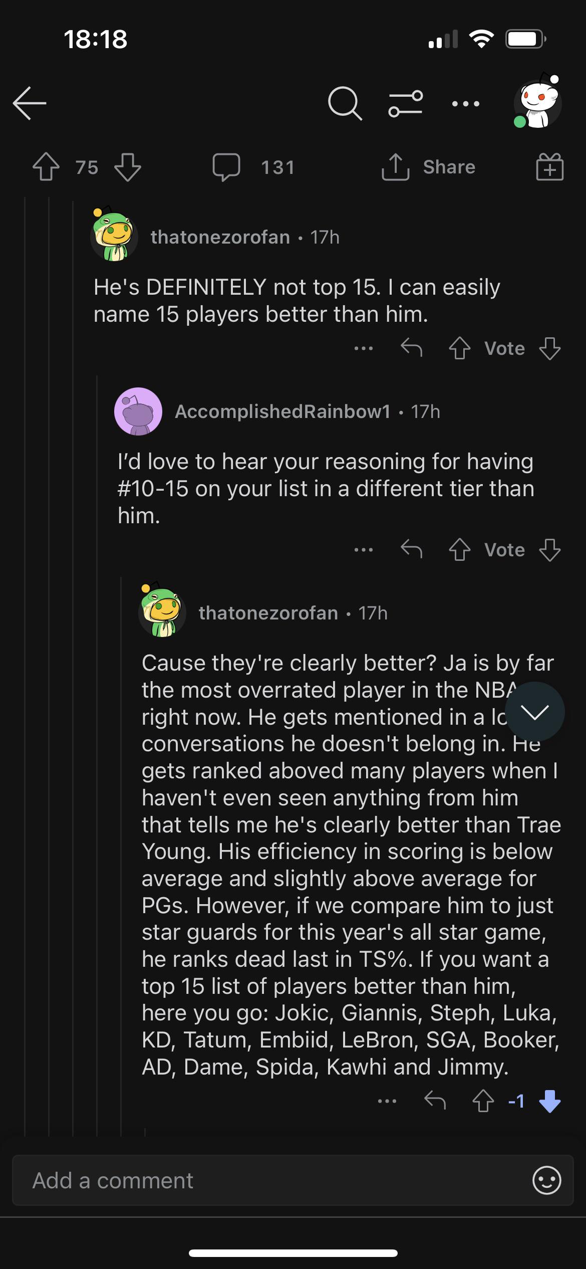 He isn’t top 15 but the moment someone whips out TS% you can abandon the conversation