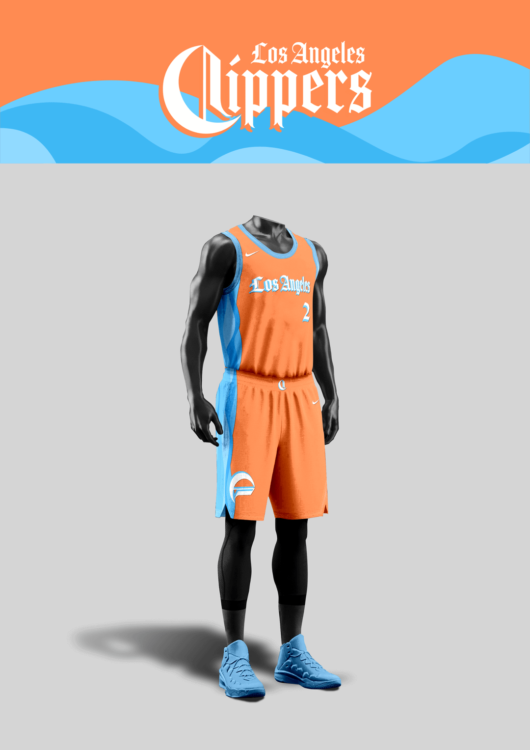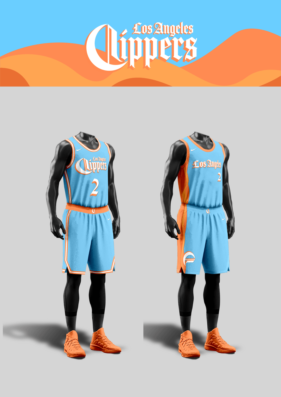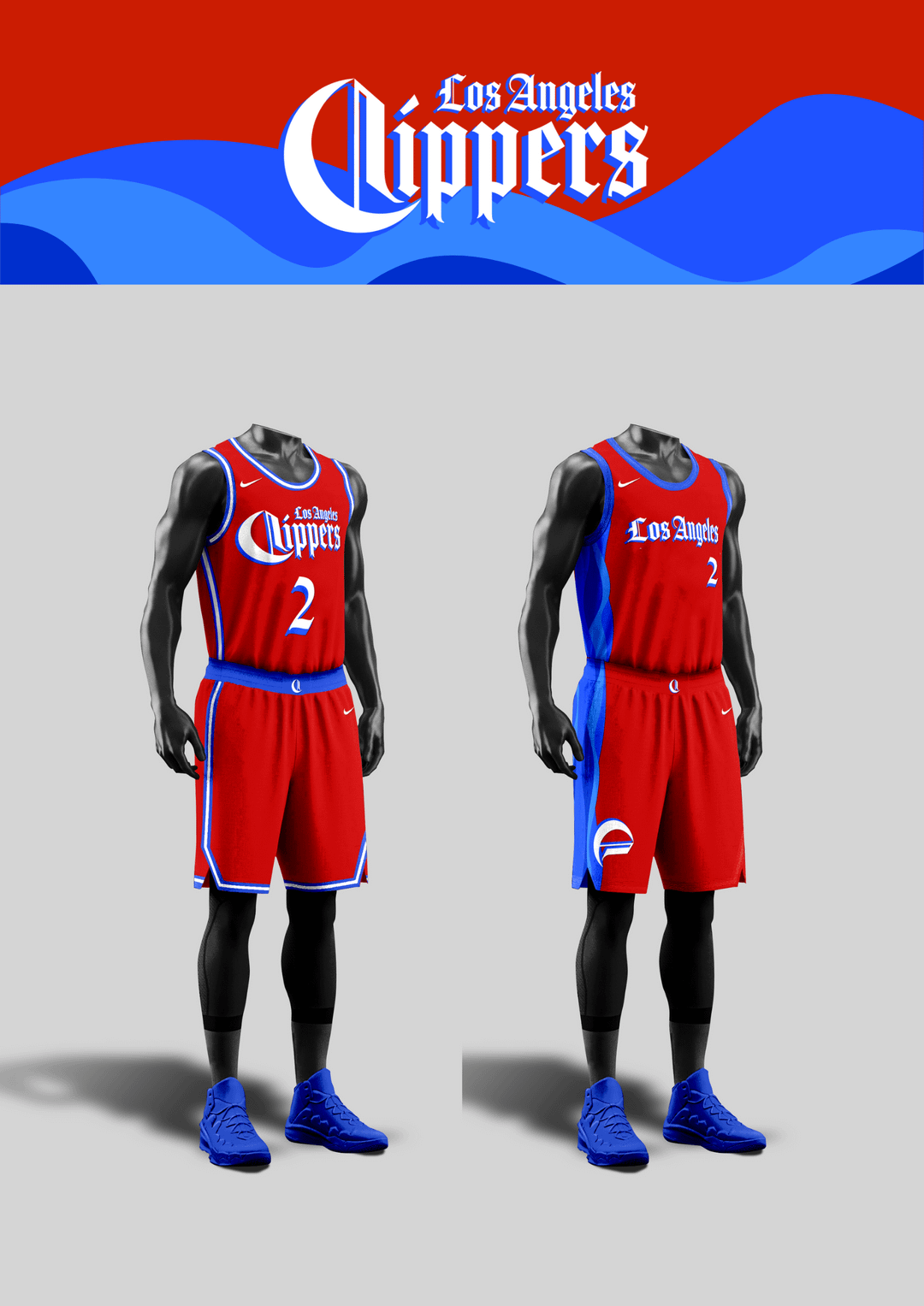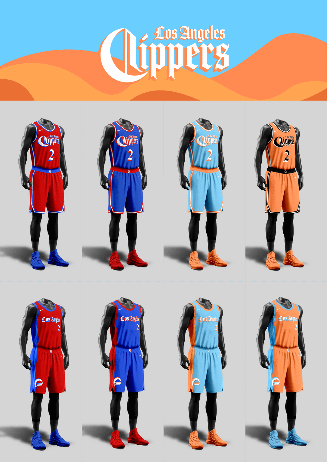 Colors-wise, I steered away from the red-black-white combo and made versions with the iconic colors from the previous eras, ranging from red-blue of Lob City, baby blue-orange of the San Diego Clippers, and the black-orange-white of the Buffalo Braves.