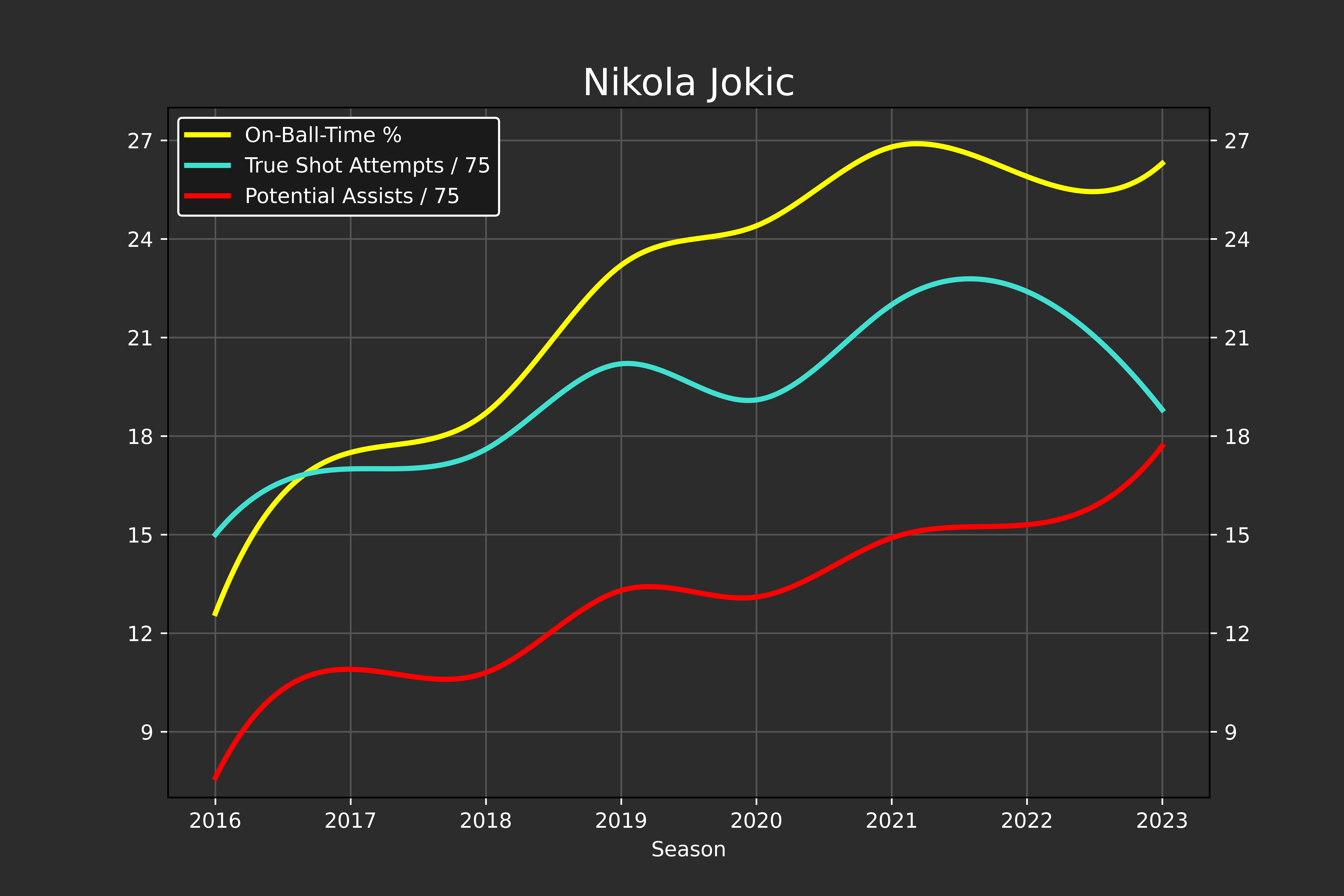 Balanced Jokic Best Jokic by gosuruss Denver NuggetsNorthwest DivisionWestern Conference Prev Post Remix trade Devoe for first round pick. September 14, 2023 Next Post Kentucky basketball has offered HIGH FLYING five-star VJ Edgecombe | Kentucky Wildcats Podcast September 14, 2023 1 Comment JokAllYouWant2023 3 years ago “Pass-first” if I’ve ever seen it on a chart. That shot attempt and on ball time spike after Murray’s injury is clear as day Write A CommentYou must be logged in to post a comment.
