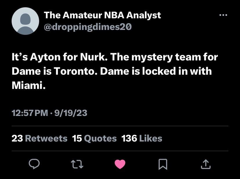 I am staying optimistic but seeing Toronto now wants Dame doesn’t give me a good feeling knowing their history