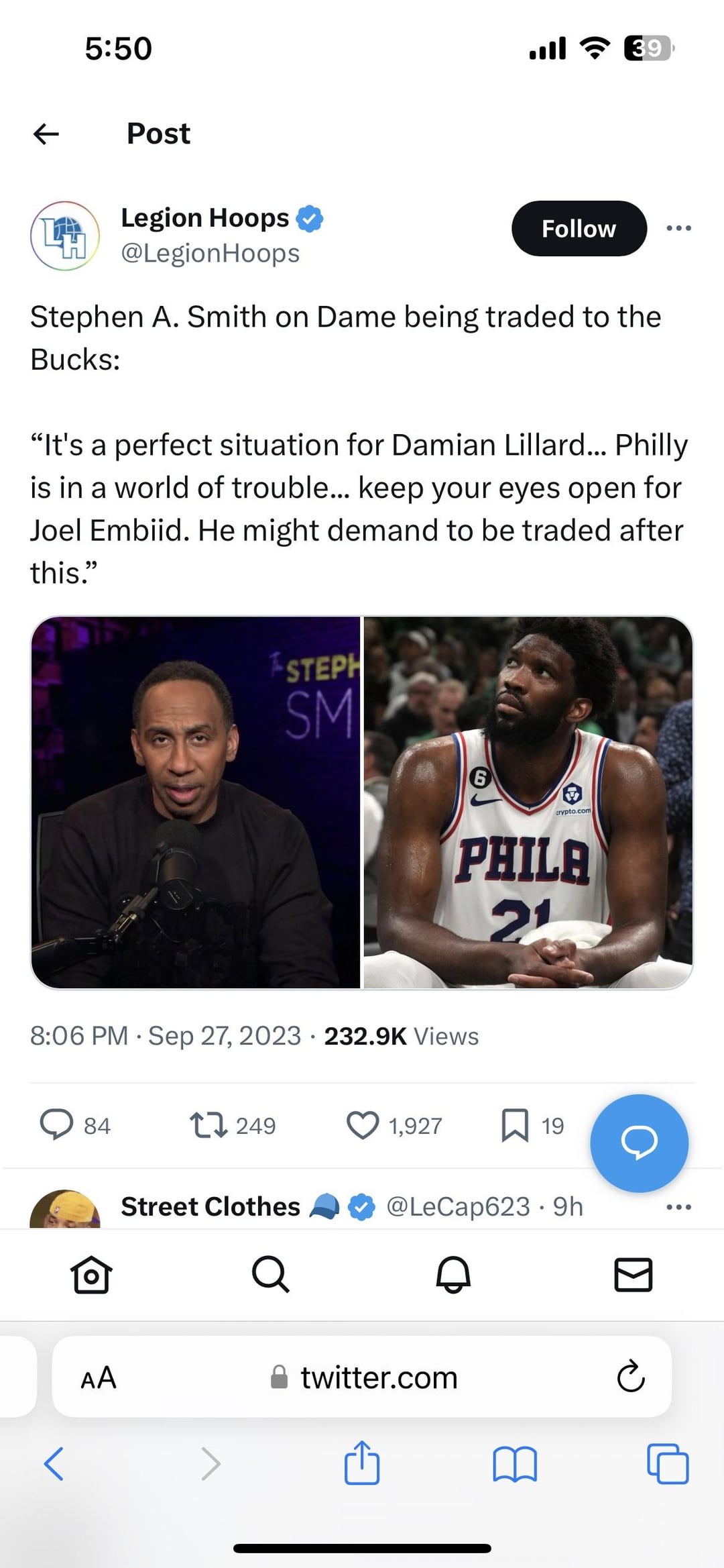 Again. I don’t know how I expect Sixers to recover from this. Hope Daryl Morey can prove me wrong though but things are looking very BLEAK right now.
