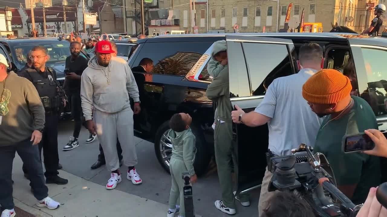 Smart move holding the kids so he doesnβt have to sign or dap anyone up lol