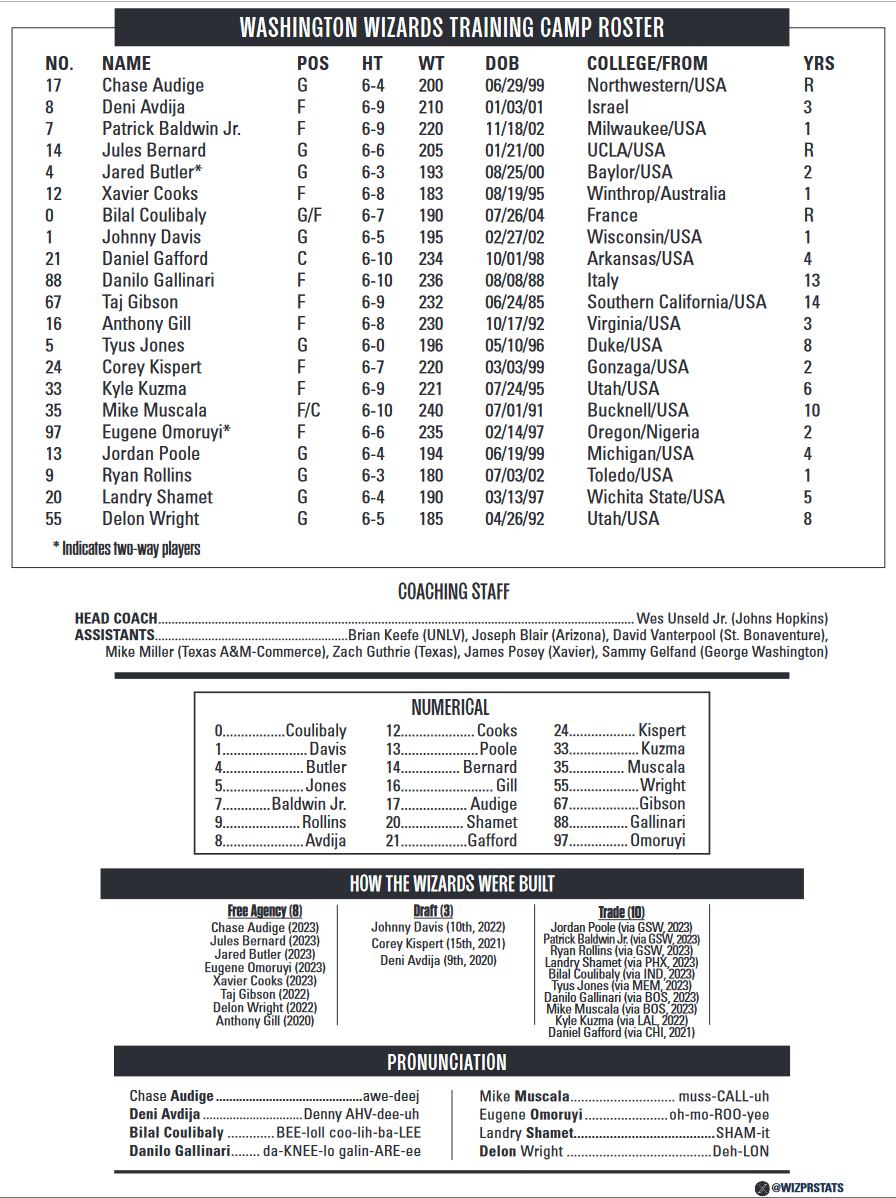 2023-2024 Washington Wizards Training Camp Roster by z3mcs Eastern ConferenceSoutheast DivisionWashington Wizards Prev Post Damian Lillard arrives in Milwaukee, Cam Payne joins Bucks and Jrue Holiday is traded to Boston! October 2, 2023 Next Post Trail Blazers Trade Jrue Holiday For Robert Williams, Malcom Brogdon, & Picks | Full Reaction | 101 October 2, 2023 1 Comment aetherlol7 3 years ago Why are rollins and deni swapped on the numerical list, im pissed lmao Write A CommentYou must be logged in to post a comment.