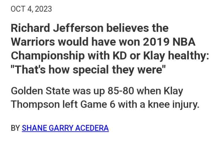 Yeah.. Richard Jefferson SHOULD be saying…. if Draymond didn’t get suspended for Game 5.. I wouldn’t have a ring.