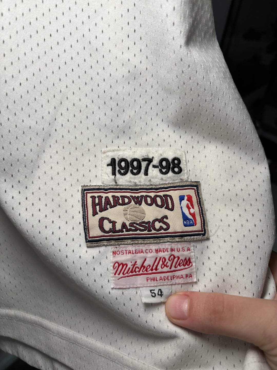 Sorry, it’s fake. The spacing on the letters is inconsistent and looks like it was sewn in by hand. The NBA logo is not clearly stitched, the 23 is not the Bulls numbering. Look at the 1 in 1997. You can see how poorly stitched it is.