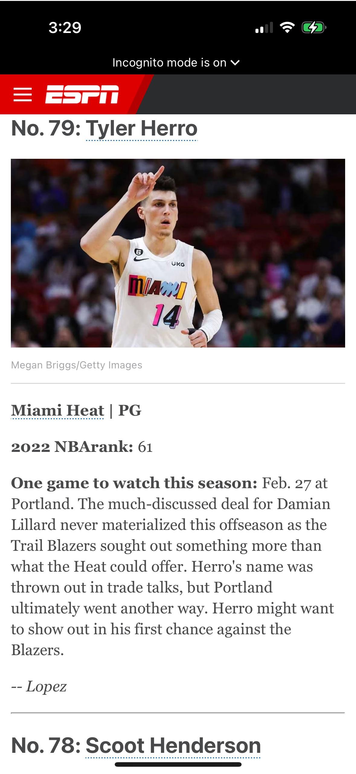 These ESPN motherfuckers have Tyler ranked below Scoot Henderson….. by futurefever Eastern ConferenceMiami HeatSoutheast Division Prev Post NBA GM’s Sleeping On Jaden Too?? October 10, 2023 Next Post [Greif] Brandon Boston Jr., Marcus Morris Sr. and Norm Powell are all out for tonight’s game in Seattle, Ty Lue said. October 10, 2023 8 Comments Saimoth 2 years ago >So now you done lit the match, but ain’t nothin’ on fire yet. You just lit the match gollum-the-great 2 years ago  RealPropRandy 2 years ago Let them sleep GiveMeShadePls 2 years ago Yall always falls for ESPN/BleacherReport bait ELPaloLoco 2 years ago Bait.No one gives a fuck about portland or their never gonna be higher that 78 henderson. RarePikachuu 2 years ago Scoot will probably be better when it’s all said and done, but definitely not this year. CARDIO_305 2 years ago Even better I would place all that in Herro’s locker room. He’s going to shut up a lot of people this year. OrganizationFar6086 2 years ago They have him below Jordan Clarkson. Who he’s a better version ofWrite A CommentYou must be logged in to post a comment.