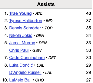 Jamal & Jokic are both top 5 in assists so far this season