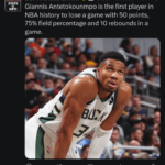 Tonight’s game is the third time in his career that Giannis Antetokounmpo totaled 50+ points and 10+ rebounds, while shooting 75% or better, giving him the second-most such games of that nature in NBA history, trailing only Wilt Chamberlain:
