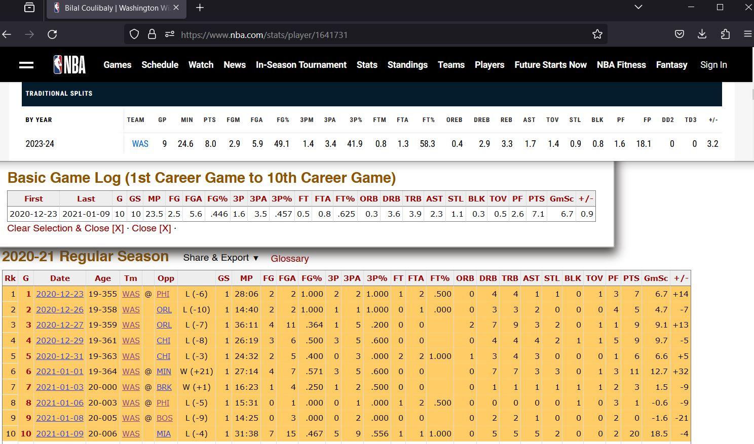 Bilal averages in the first 9 games of his NBA career vs. Deni first 10 games of his career – some resemblance in their averages. Deni had his first 20 points game in his 10th game as a rookie, while Bilal had it on his 9th game. Deni was also 19 years old at that time.