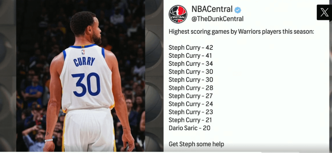 I was surprised they actually showed this on the broadcast along with the “Get Steph some help” line.