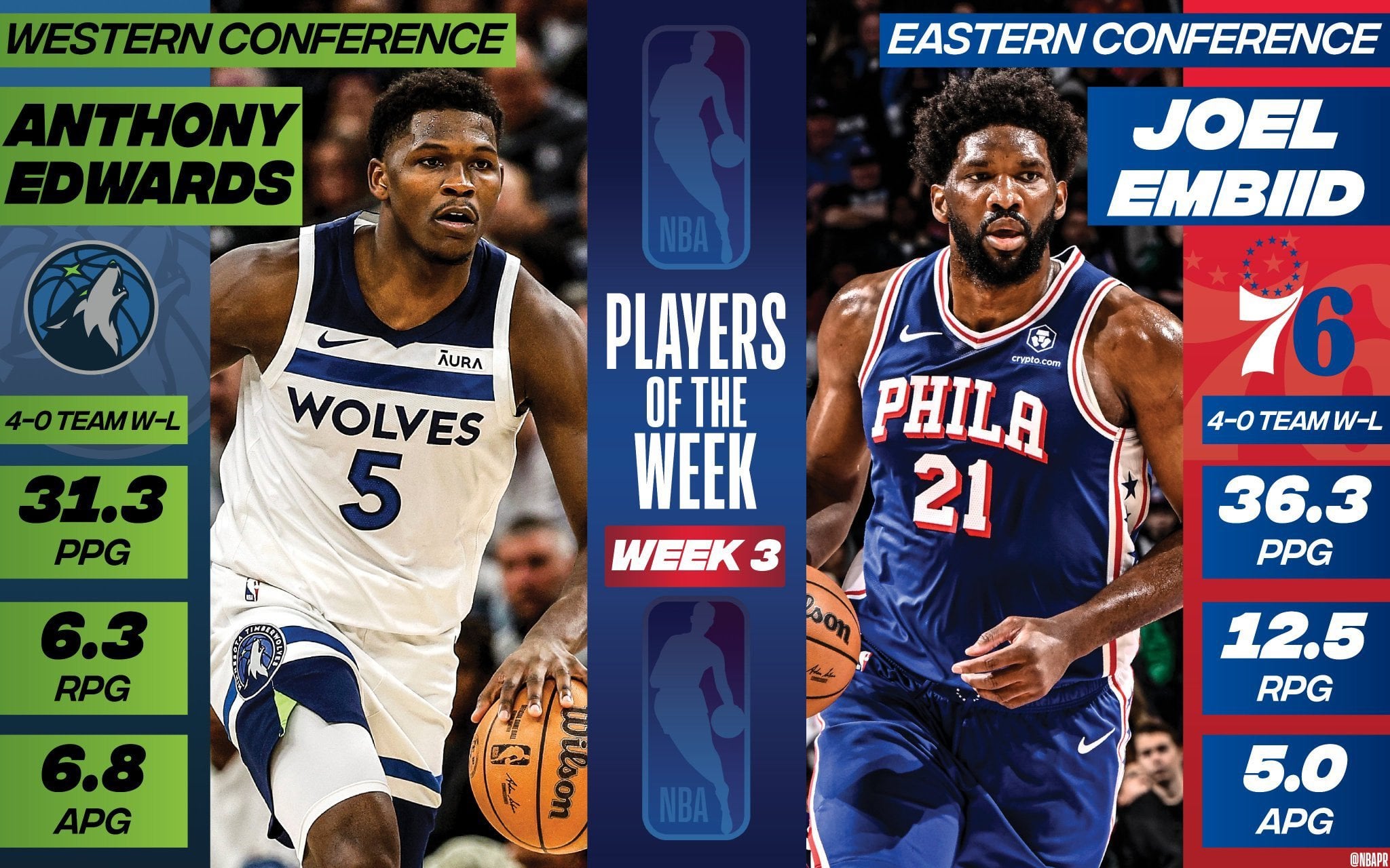 [NBACentra] Player of the Week in the West: Anthony Edwards. Player of the Week in the East: Joel Embiid