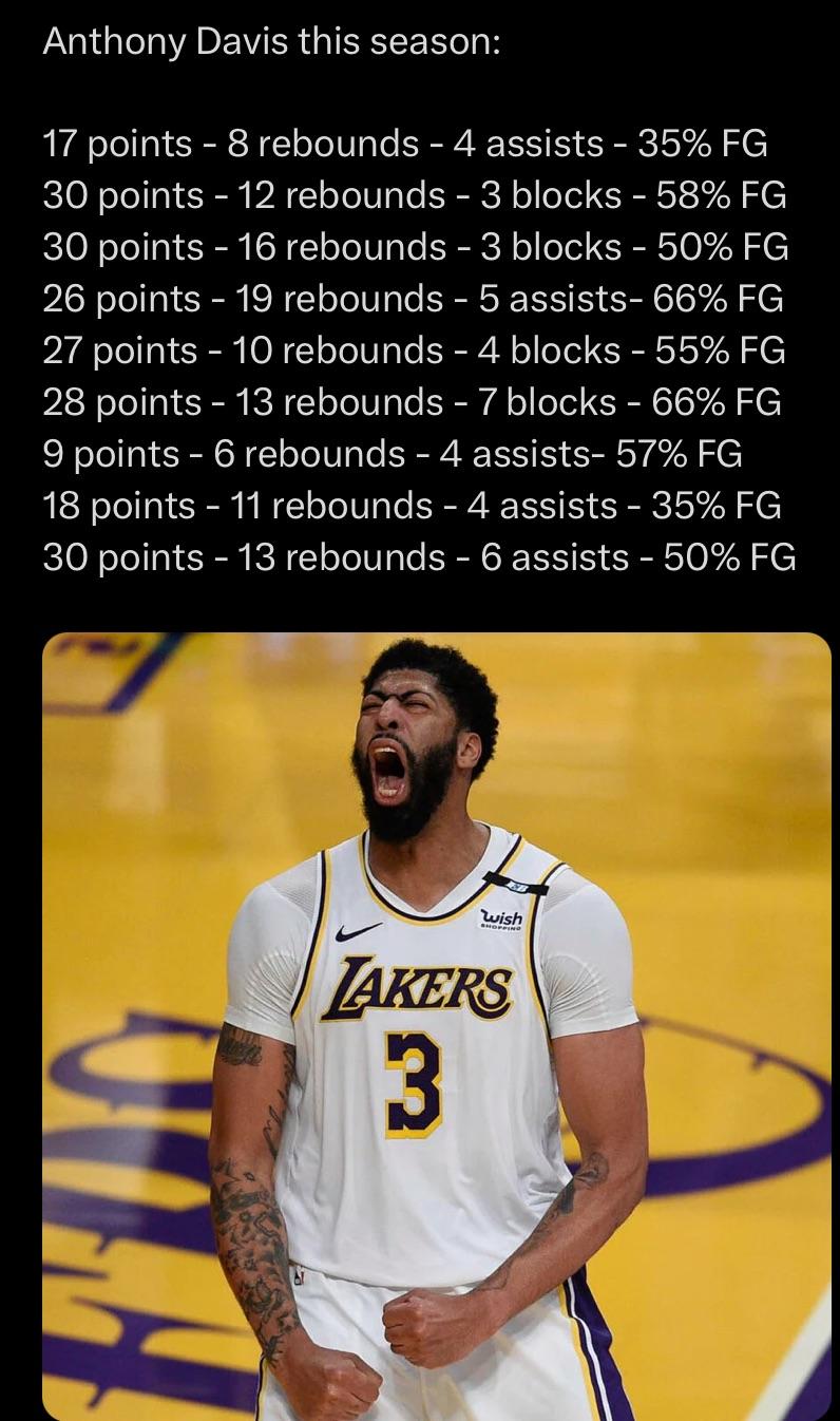 Some guy in the thread the other day tried to say that AD has not been consistent this season lol.