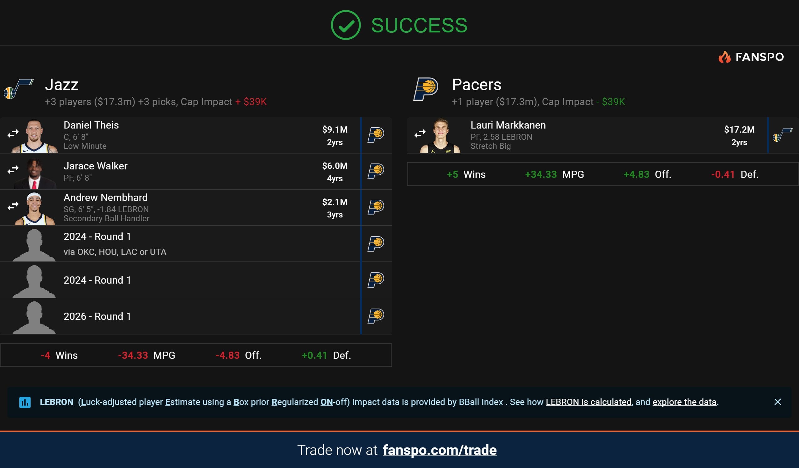 It would definitely take some cap finagling, tax hits, restructuring contracts or letting favorites go, but I think a starting lineup of Haliburton – Mathurin – PG – Markkanen – Turner and a bench of McConnell – Brown/Hield – Nesmith – Toppin – Smith is 100% a contender.