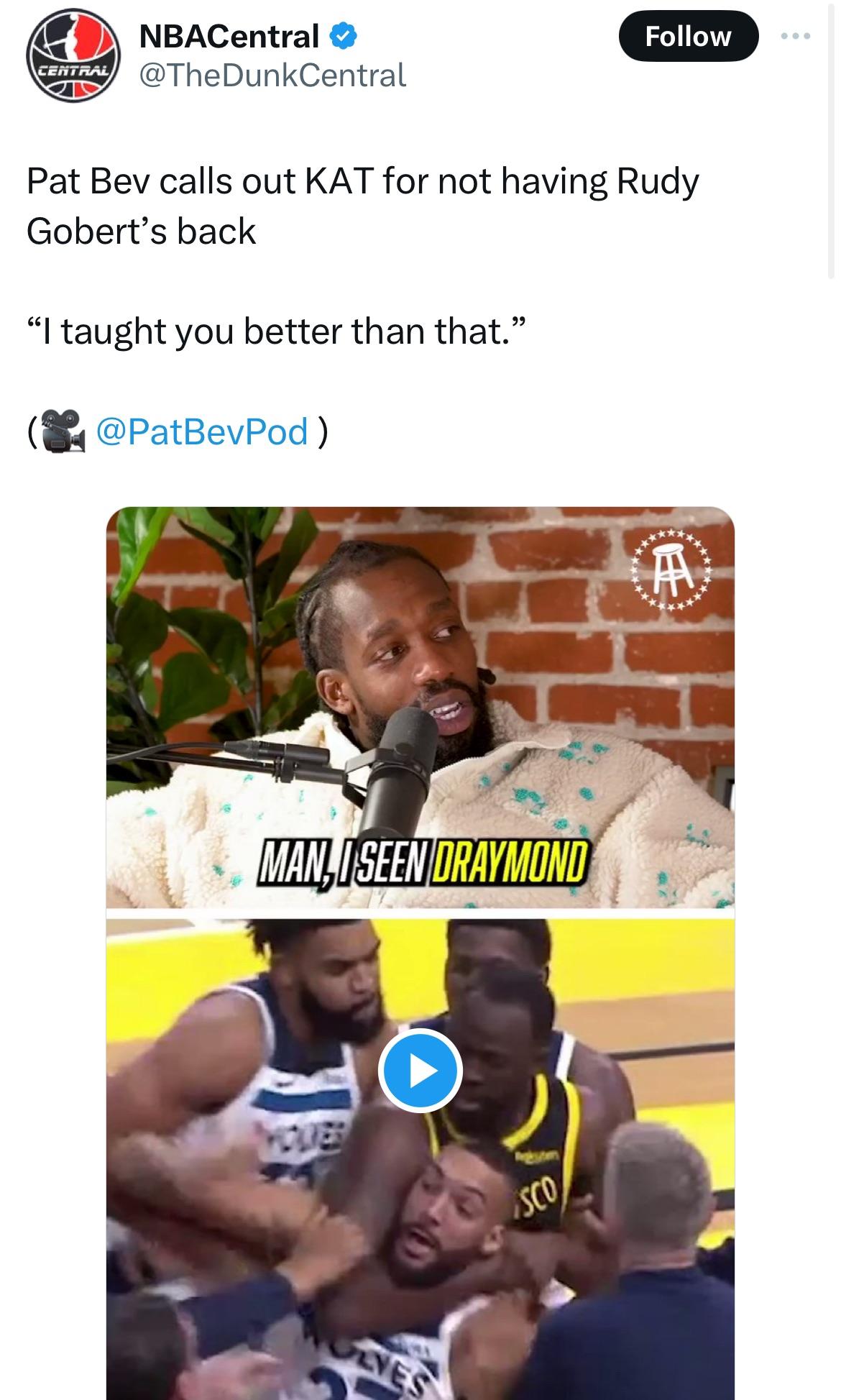 I get what pat bev is trying to saying since he would have punch draymond but that’s isn’t a kat role that a pat bev role.