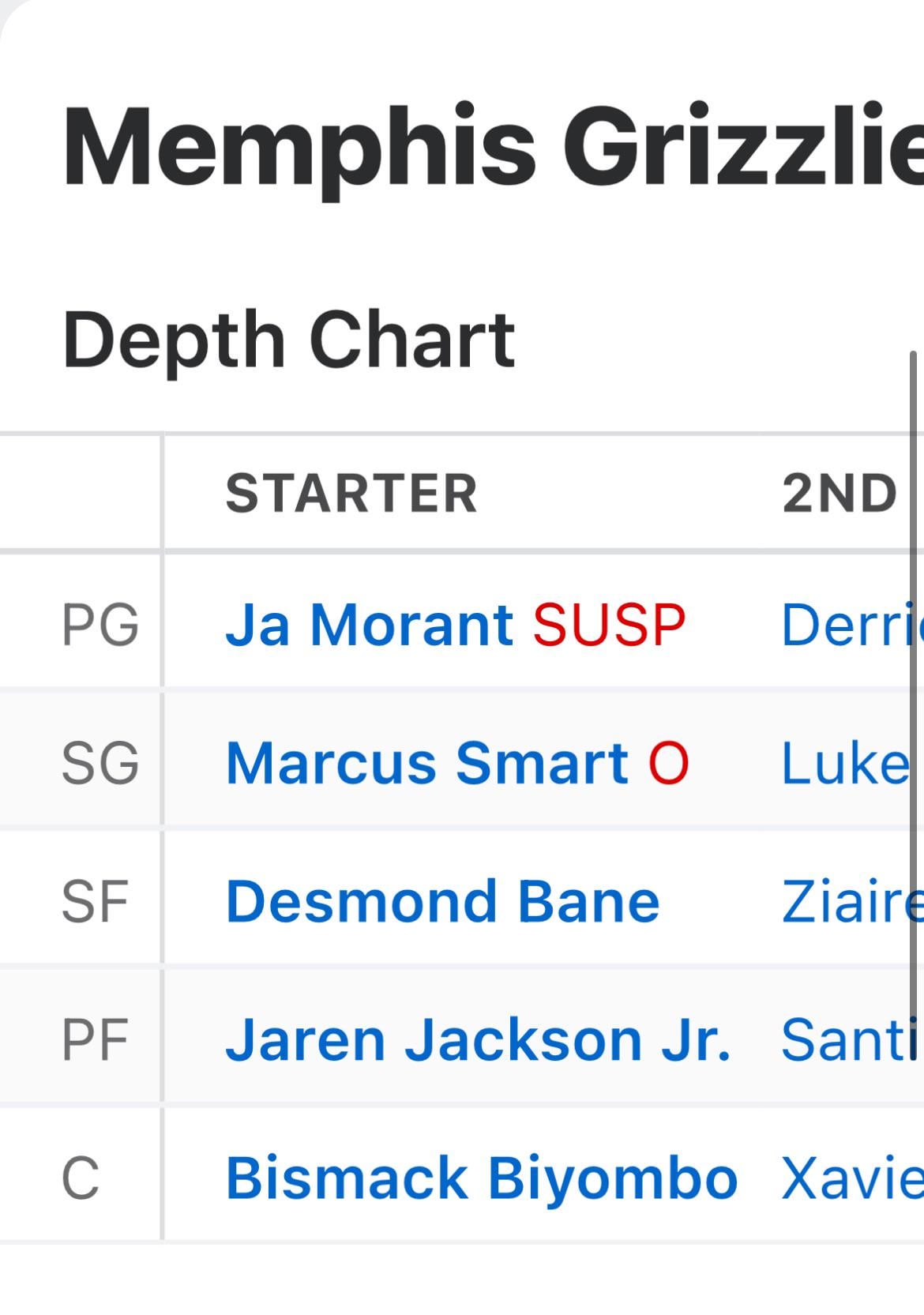 Grizzlies starting 5: I know we have had a pretty rough start of this season due to many injuries, but with ja back, and smart.WHO IS STOPPING THIS STARTING 5?